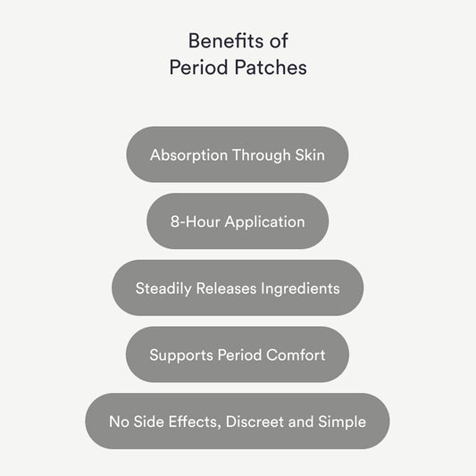 Period Relief Patches Cooling Menthol & Chamomile, Iron-Infused Lavender Essential Oil 30 Count