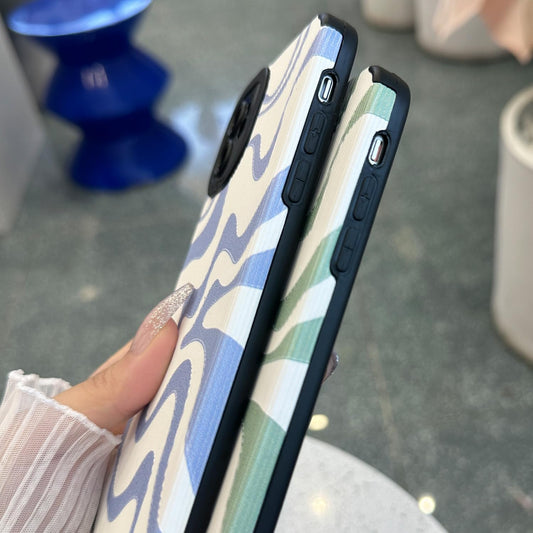 Designed for iPhone 12 13 14 15 16 Phone Case, Soft PU Leather TPU and Cute Art Wavy Painted for Women Girls, Slim Protective Shockproof Compatible with iPhone Case