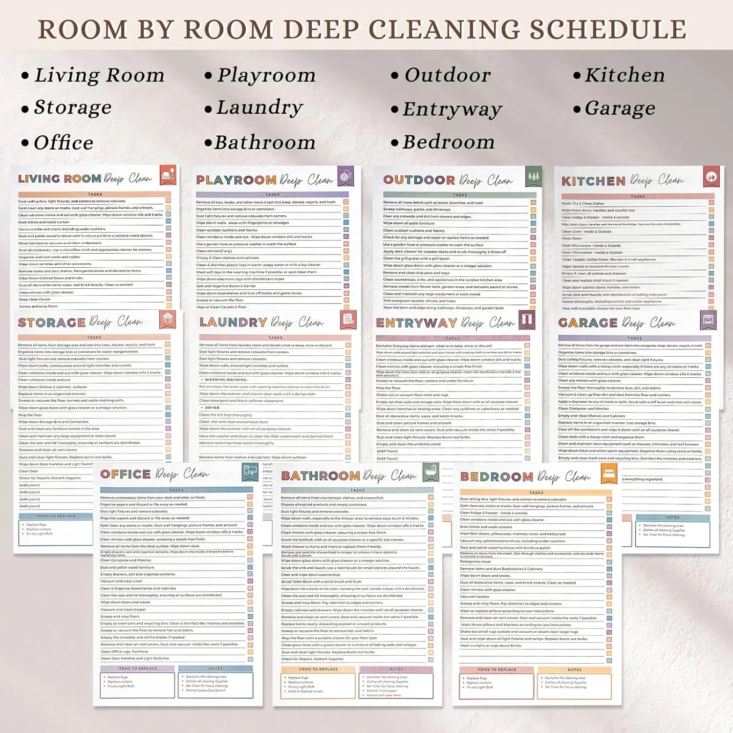 Over 10 detailed templates for every area—Kitchen, Bedroom, Bathroom, Office, Laundry, Entryway & more—each with clear, step-by-step task breakdowns.