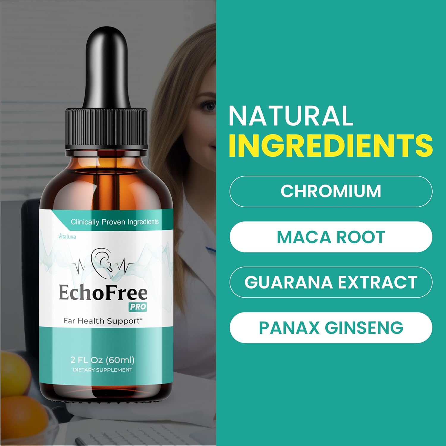 Tinnitus Relief Drops for Ringing Ears - EchoFree Liquid Supplement with Advanced Vitamins for Ear Health Support - 2oz