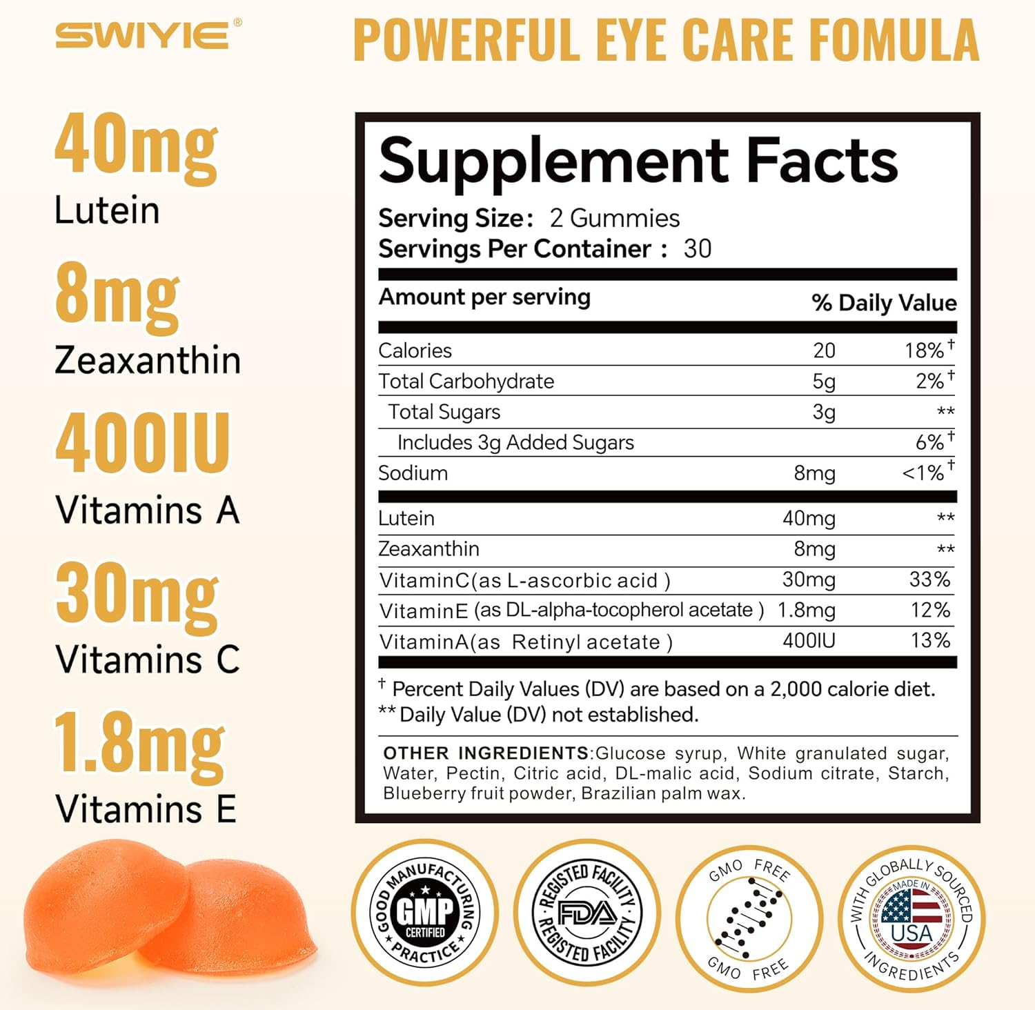 Lutein Gummies for Eye Health – Vision Support Eye Vitamins | Blueberry Flavor | 60 Gummies