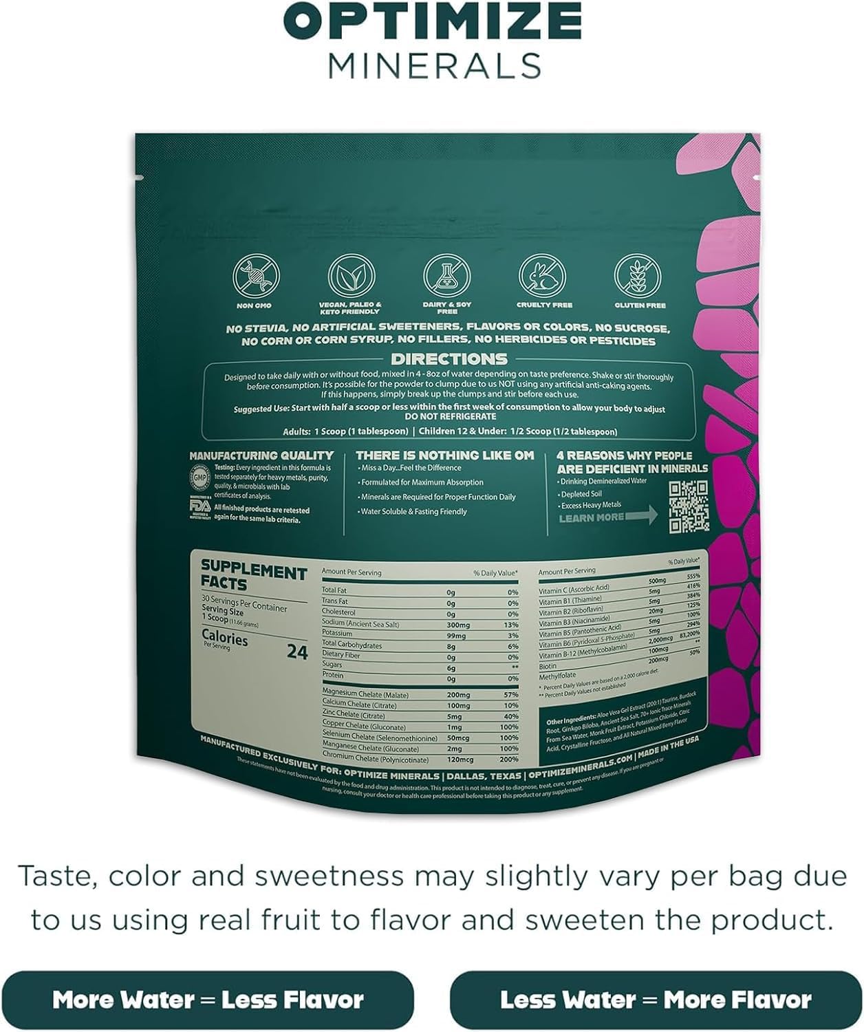 Optimize Minerals Multi Mineral Daily Formula – Magnesium, Electrolytes & Trace Mineral Supplement Powder - Gluten Free Vitamins Drink - Mixed Berry, 30 Servings