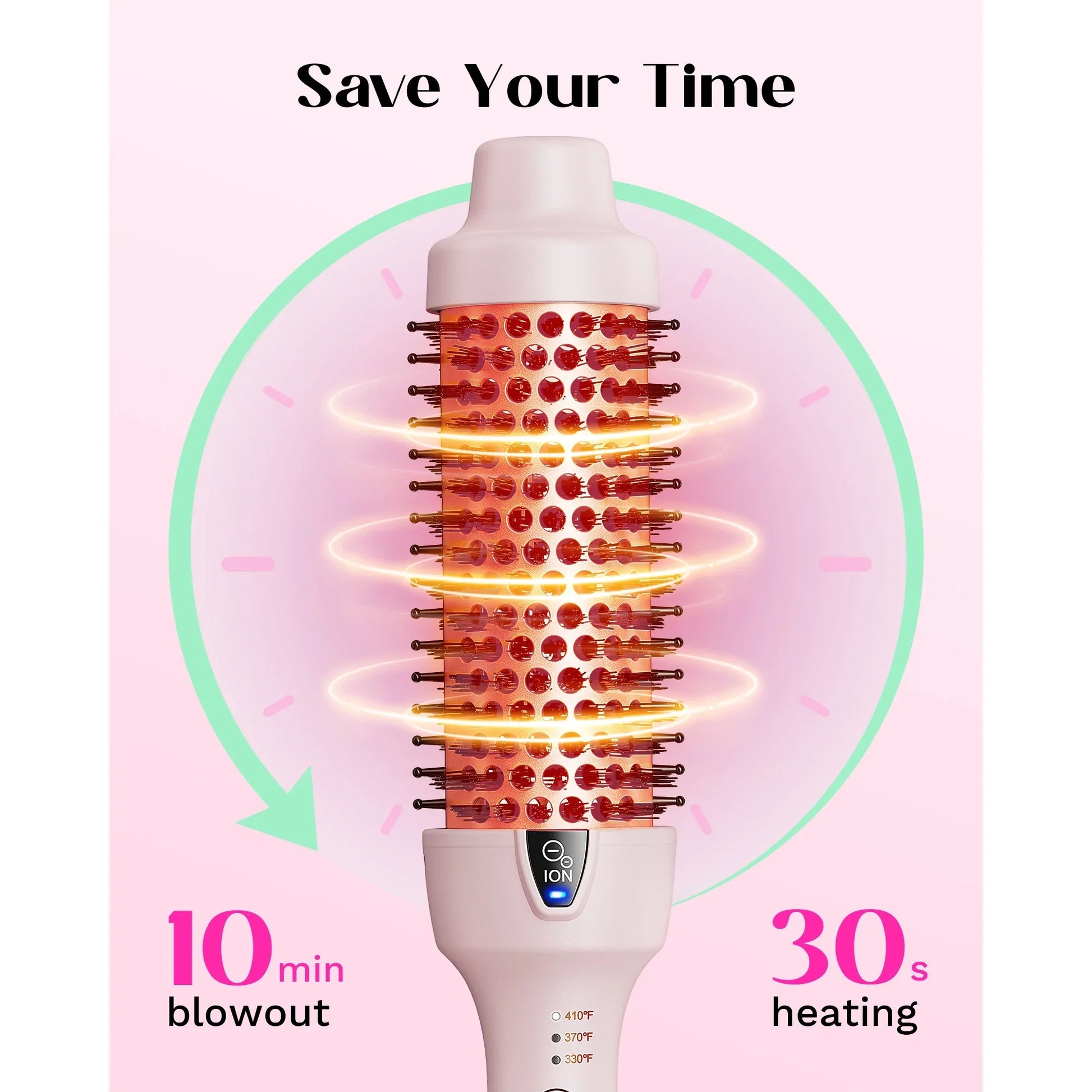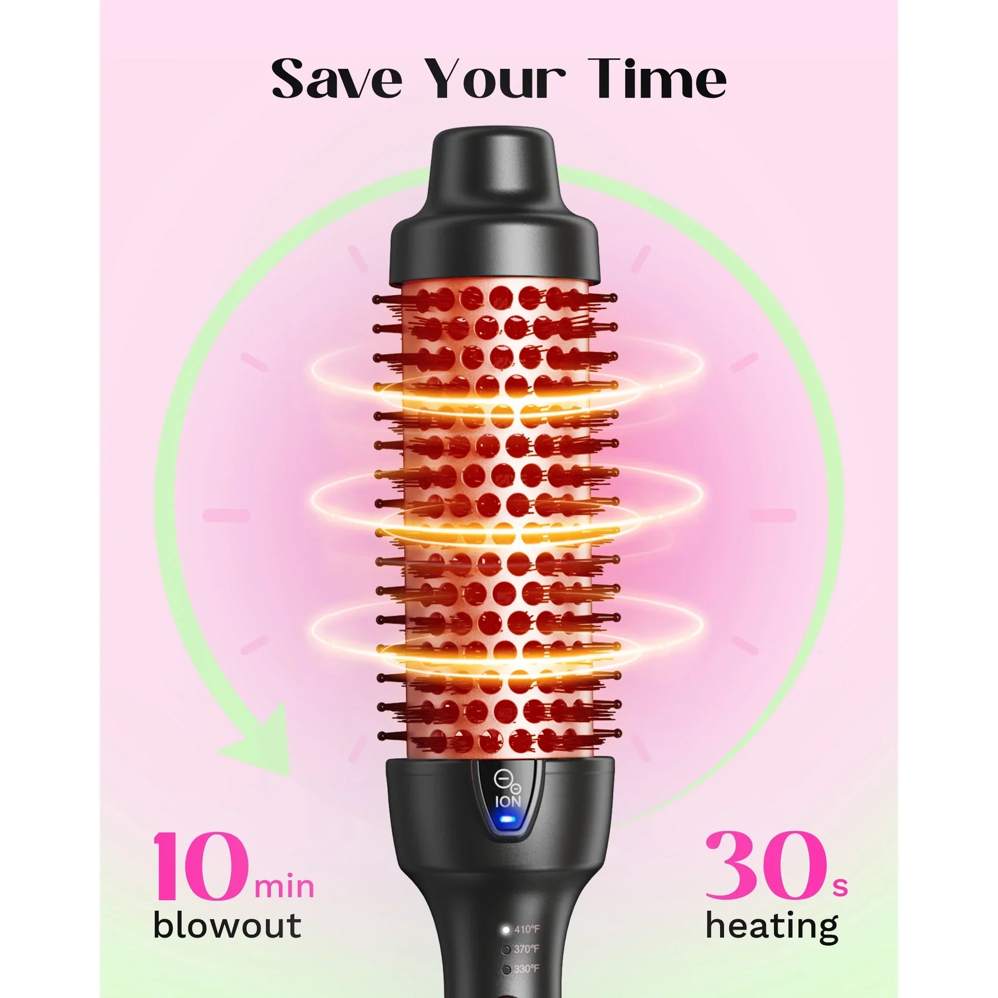 - Negative Ion Funtion: Equipped with negative ion function, our heated round brush will caress each strand of your hair with negative ions, locking in moisture and making your hair smoother, reducing frizz and tangles. It allows you to effortlessly create smooth and long-lasting curls